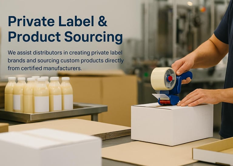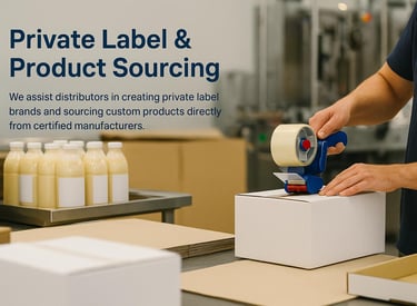 We assist distributors in creating private label brands and sourcing custom products directly from certified manufacturers.